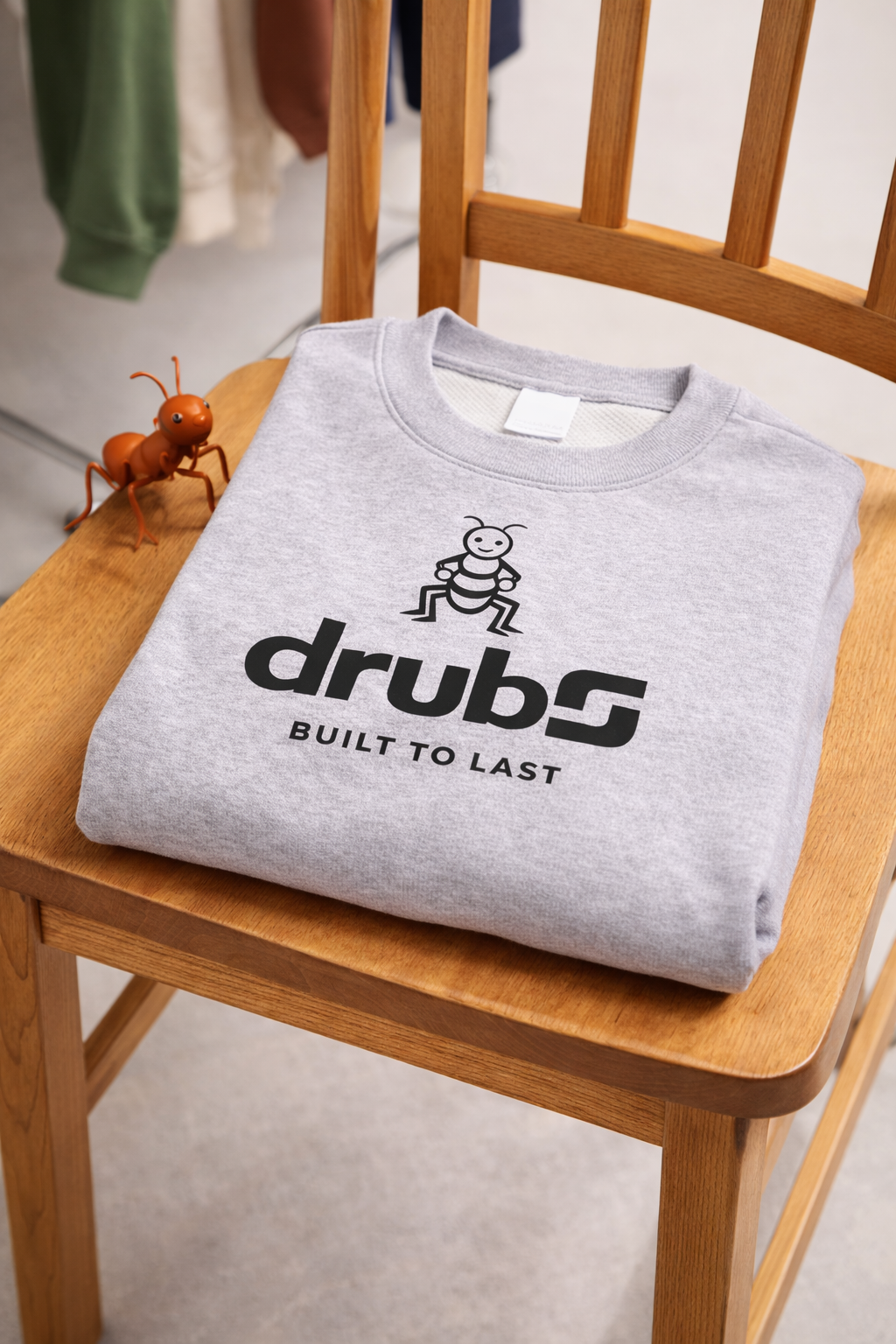 Pensé pour durer, ce sweat met en avant la mascotte fourmi DRUBS, symbole de constance, de résilience et d’esprit collectif, associée au slogan signature “BUILT TO LAST”. Une pièce forte par son message, discrète par son design, fidèle à l’esprit streetwear moderne.