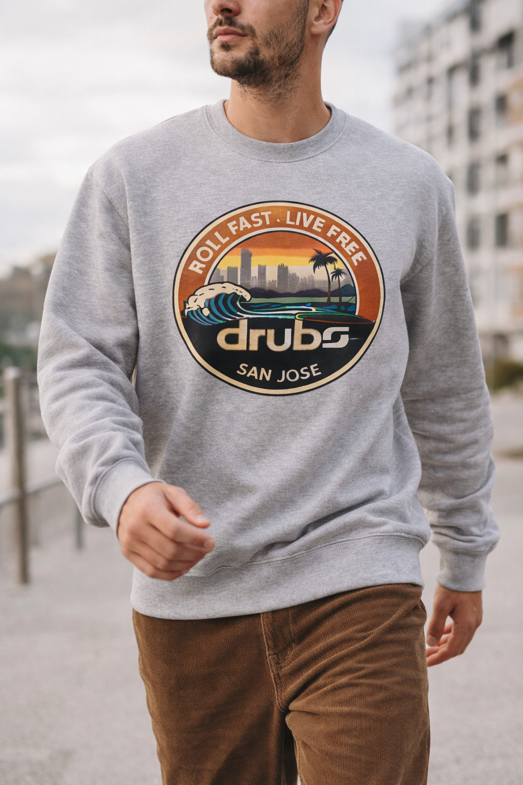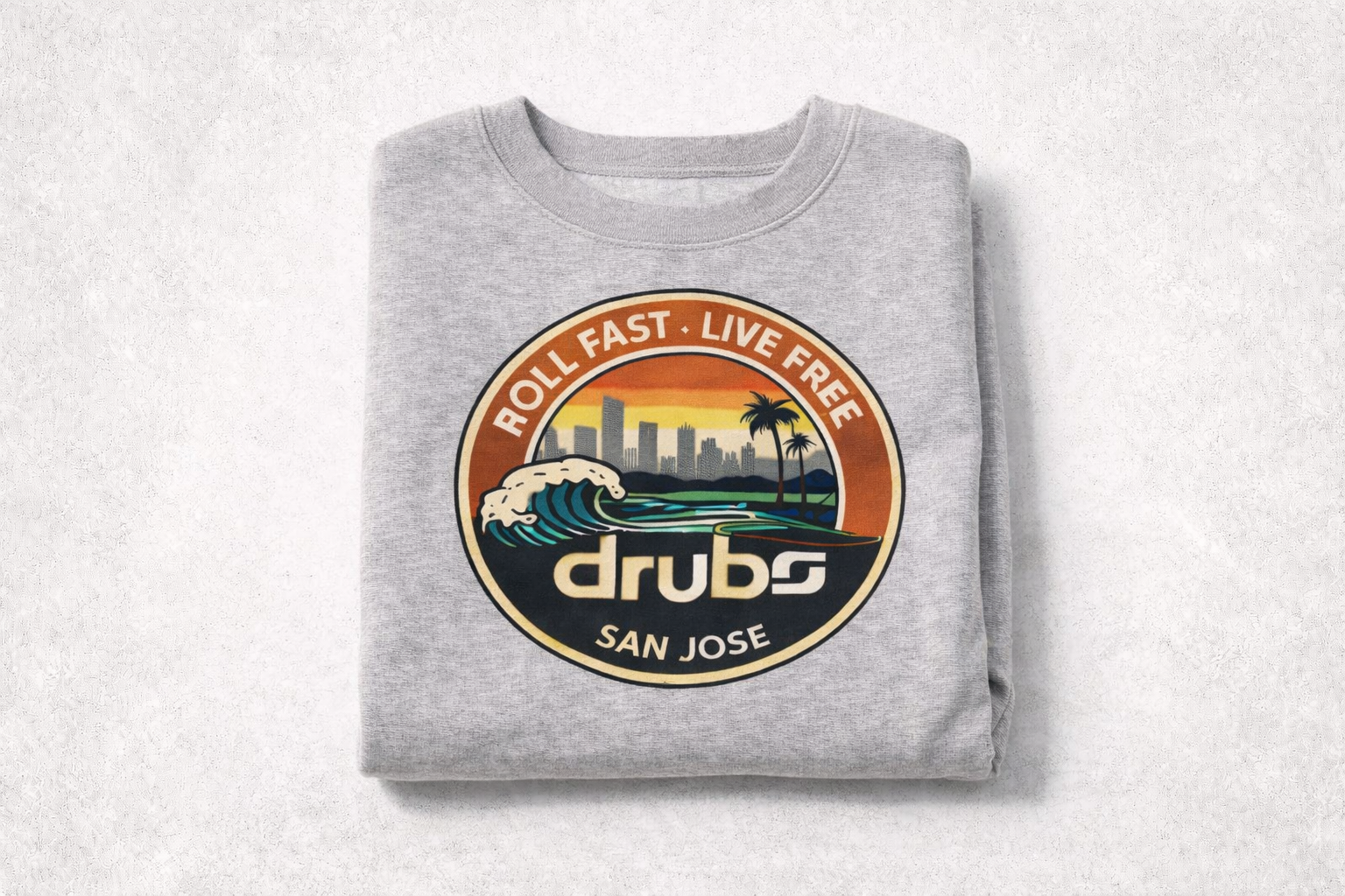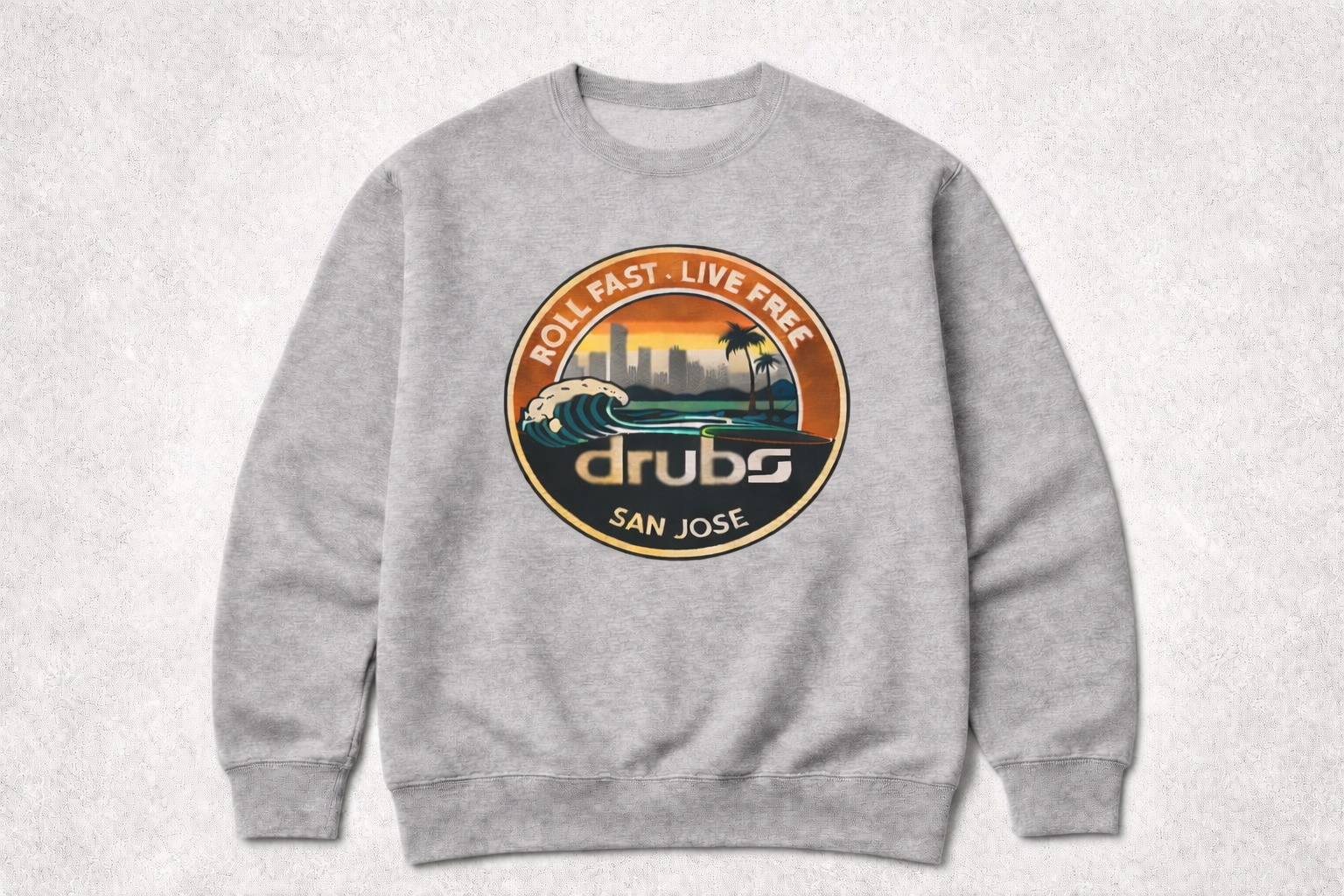 Affirme ton style avec le sweatshirt DRUBS San Jose, une pièce streetwear premium inspirée de la culture skate et de l’esprit californien. Son visuel iconique représentant la vague de San Jose incarne la liberté, la vitesse et l’ADN urbain de la marque DRUBS.
