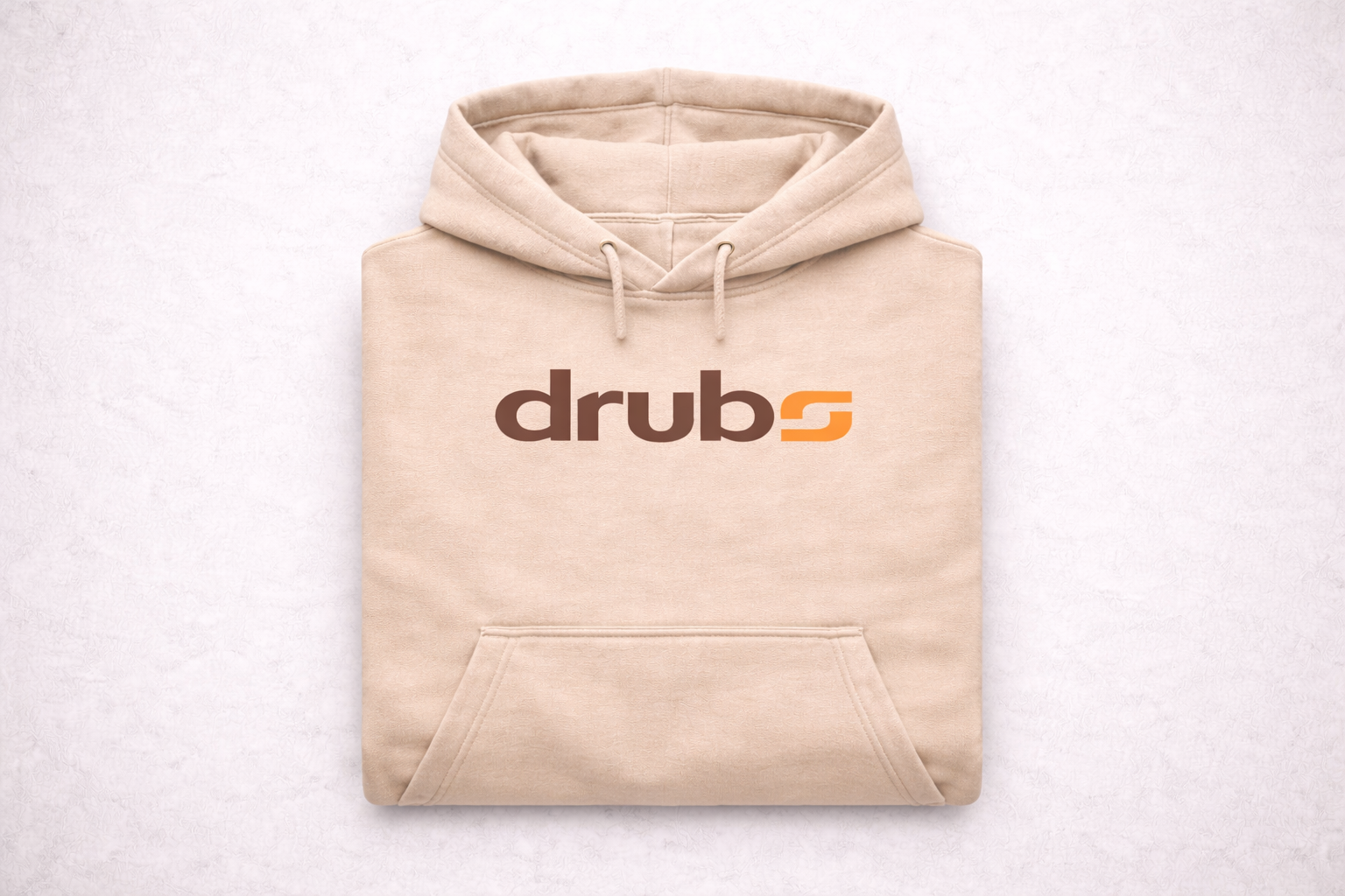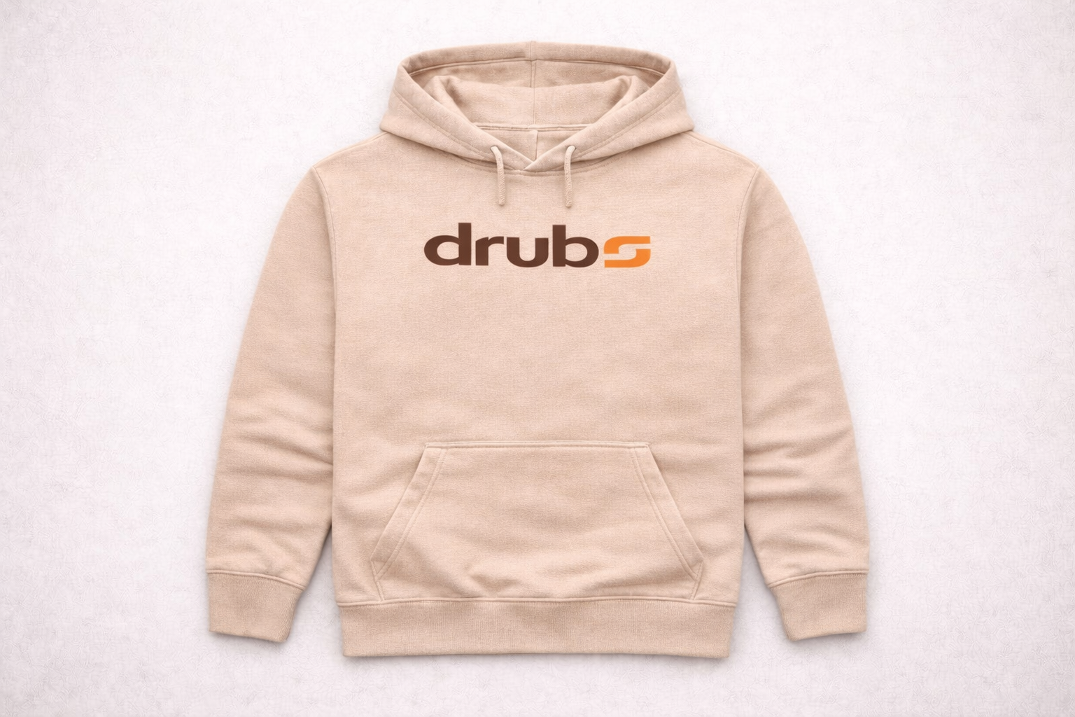 Le logo DRUBS, revisité dans une teinte contrastée spécialement adaptée à la couleur beige du sweat, est imprimé sur la poitrine avec une finition nette et durable. Un design minimaliste, efficace, fidèle à l’ADN street de la marque.