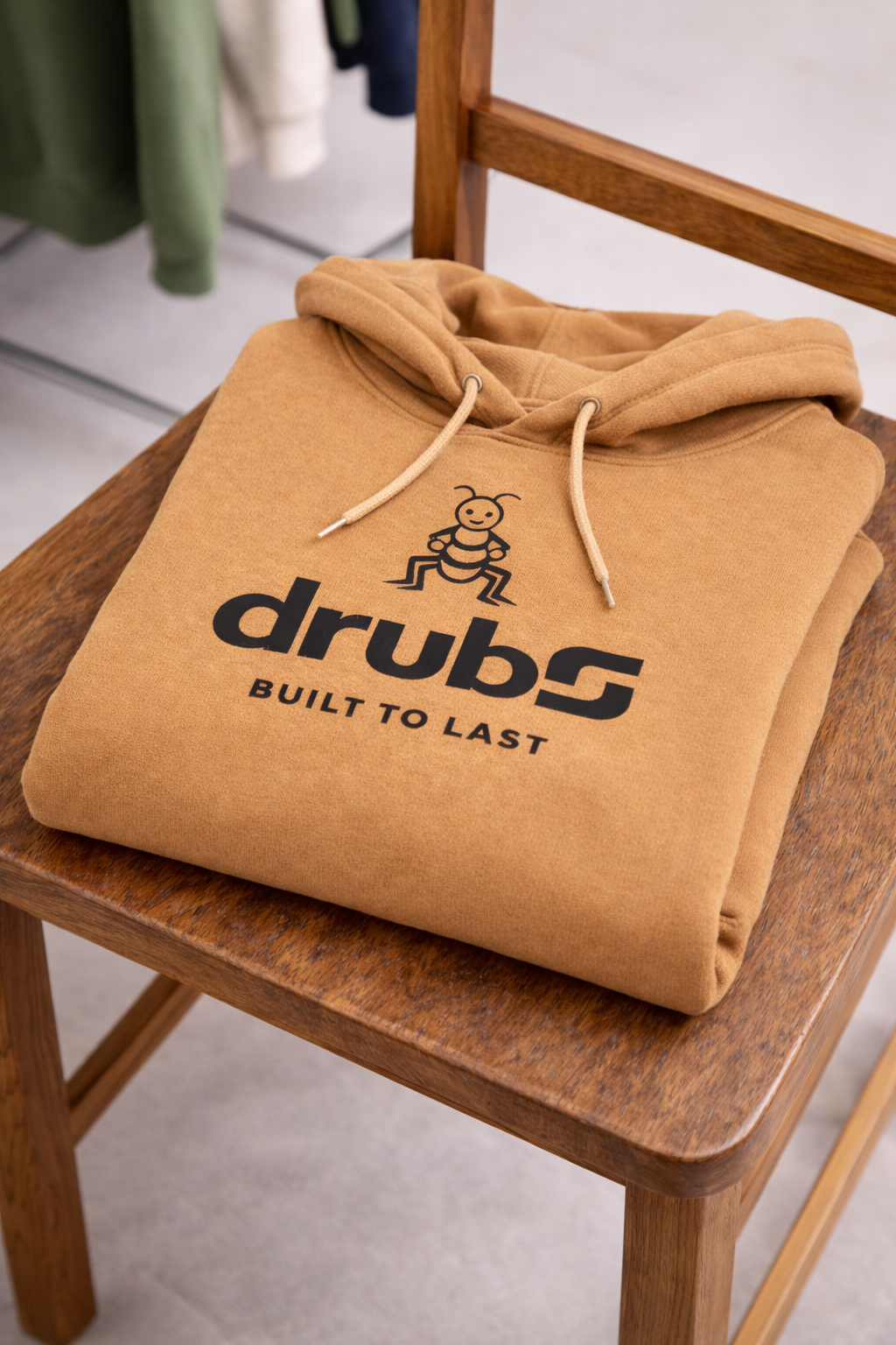 Confectionné dans un tissu épais et confortable, ce sweat offre un excellent équilibre entre douceur, résistance et tenue dans le temps. Sa couleur camel intemporelle s’associe facilement à tous les styles, du streetwear urbain au casual premium. Le visuel poitrine, composé de la fourmi DRUBS et du slogan “BUILT TO LAST”, affirme un message fort : avancer, construire, durer.