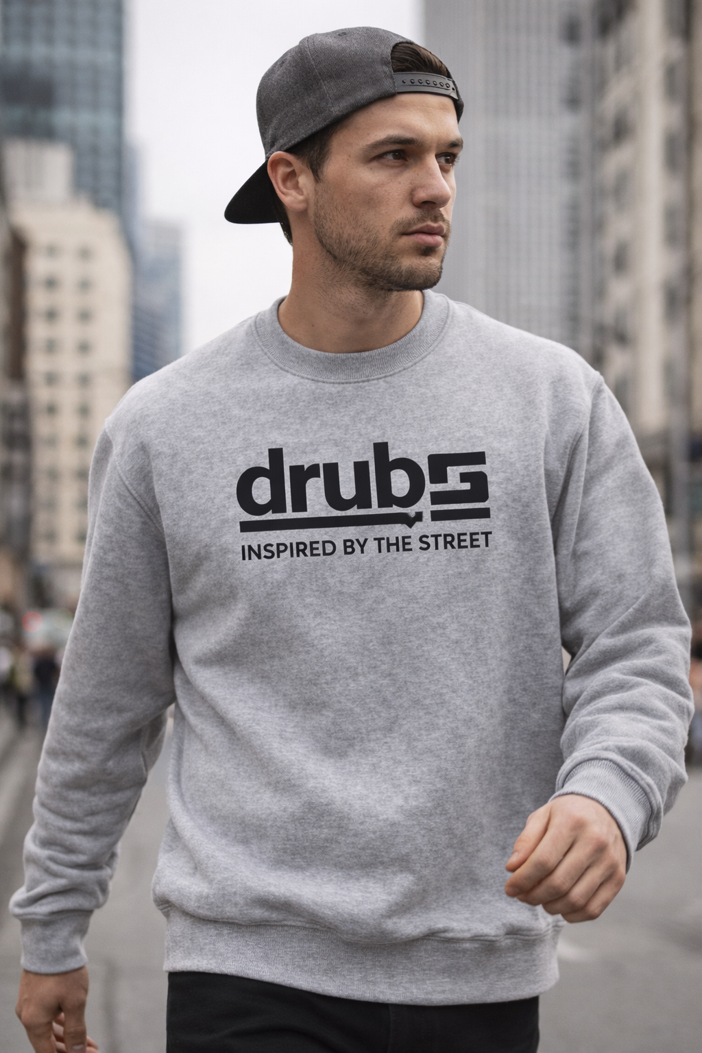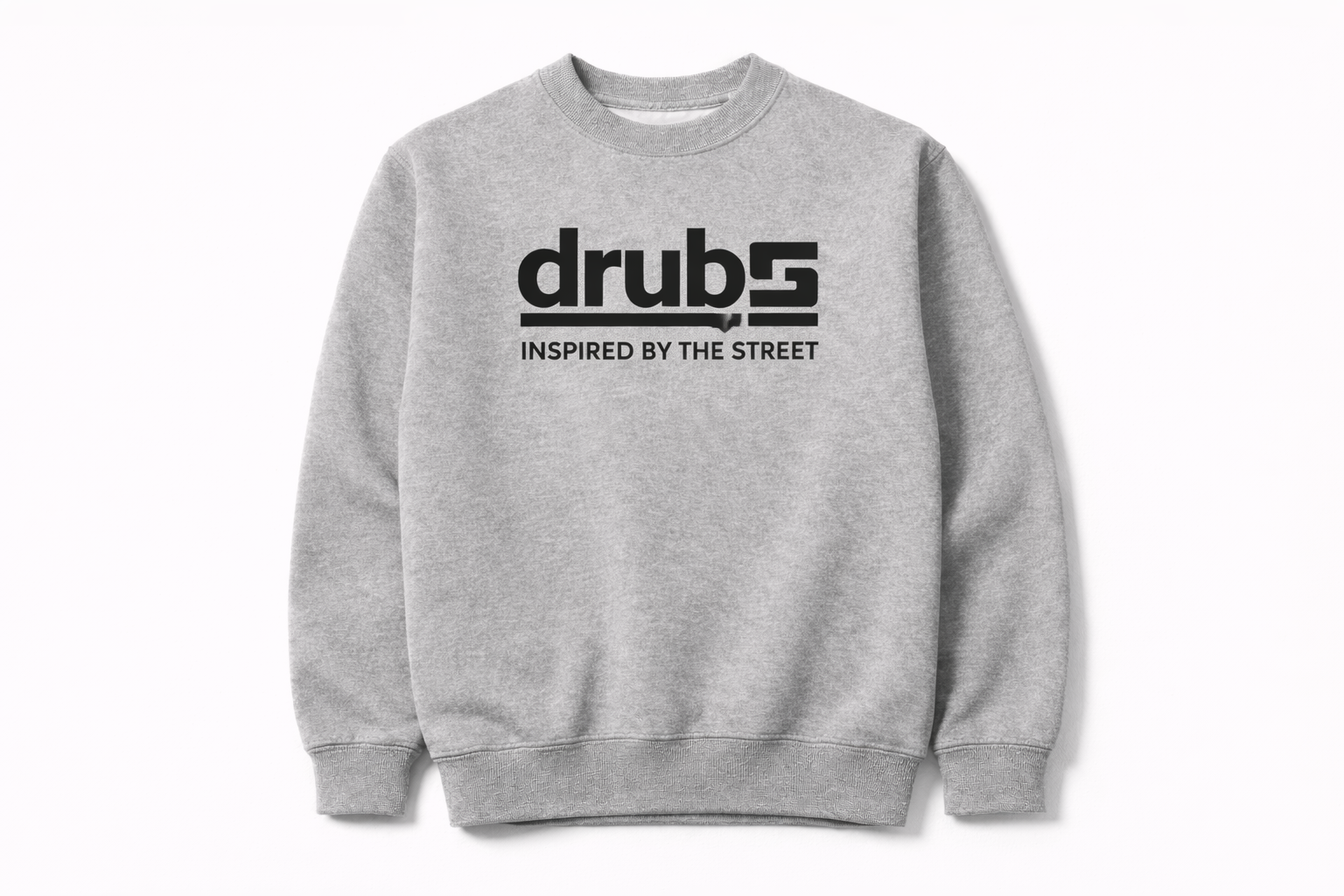 Le logo DRUBS à l’esthétique graphique et carrée, sans arrondi, affirme une identité forte, inspirée par la culture urbaine, le mouvement et l’indépendance. Le slogan “Inspired by the Street” rappelle d’où tout commence : la rue, les rencontres, l’énergie brute.